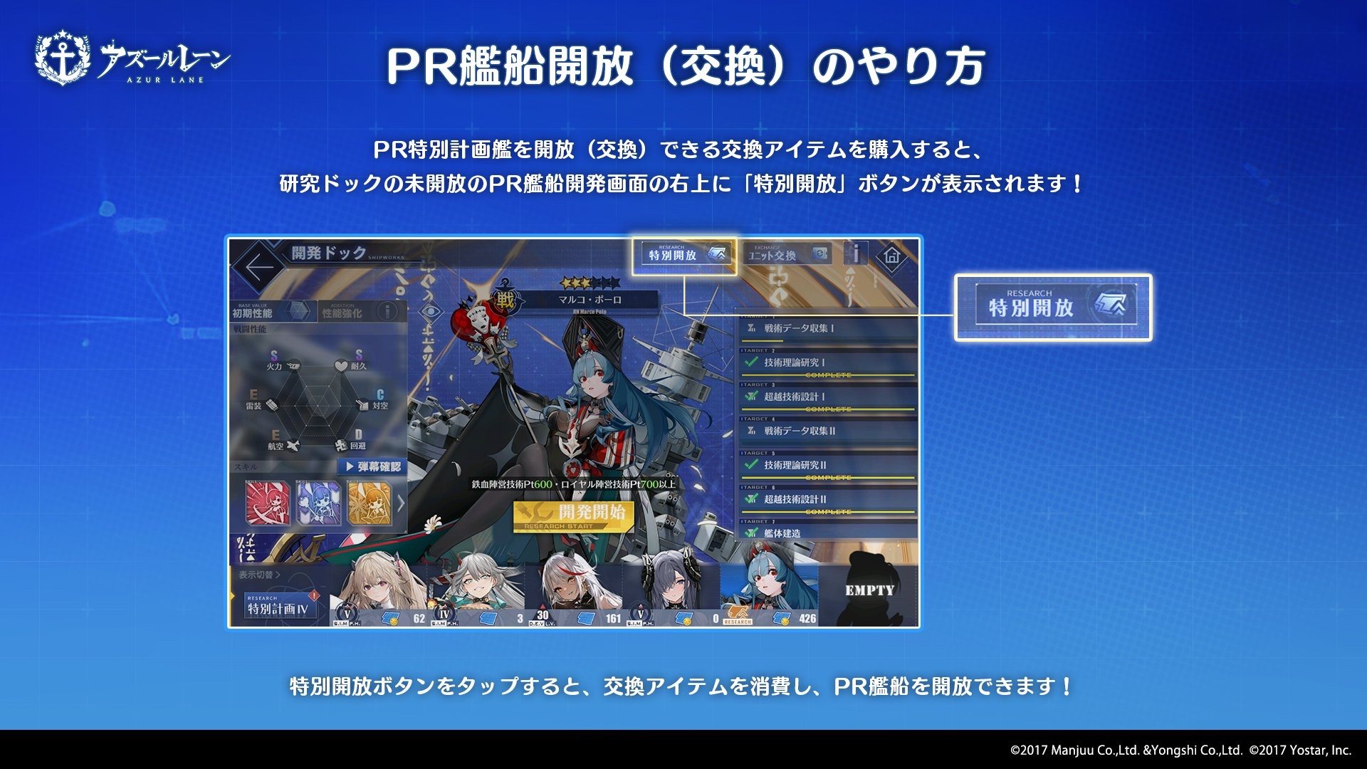 購入すると、開発ドックの「特別開放」でアイテムを消費し、PR艦船を直接開放可能!