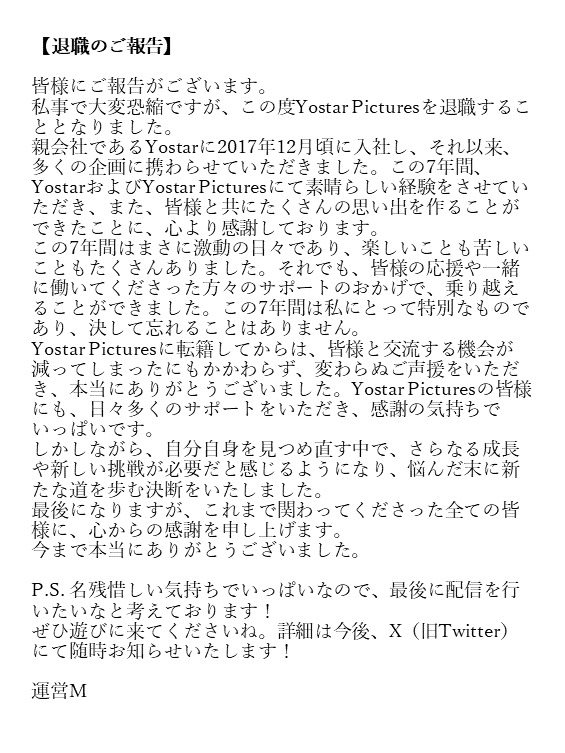 そういえばMにガチ恋してYostarに就くみたいなこと言ってるしゅきかんいたなw